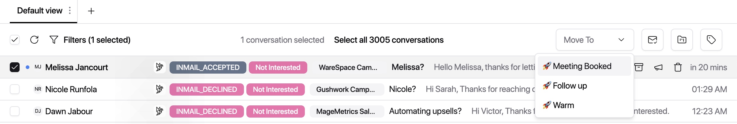 Pro Tip: Archive “Not Interested” responses regularly to keep your inbox clean and focused on opportunities.