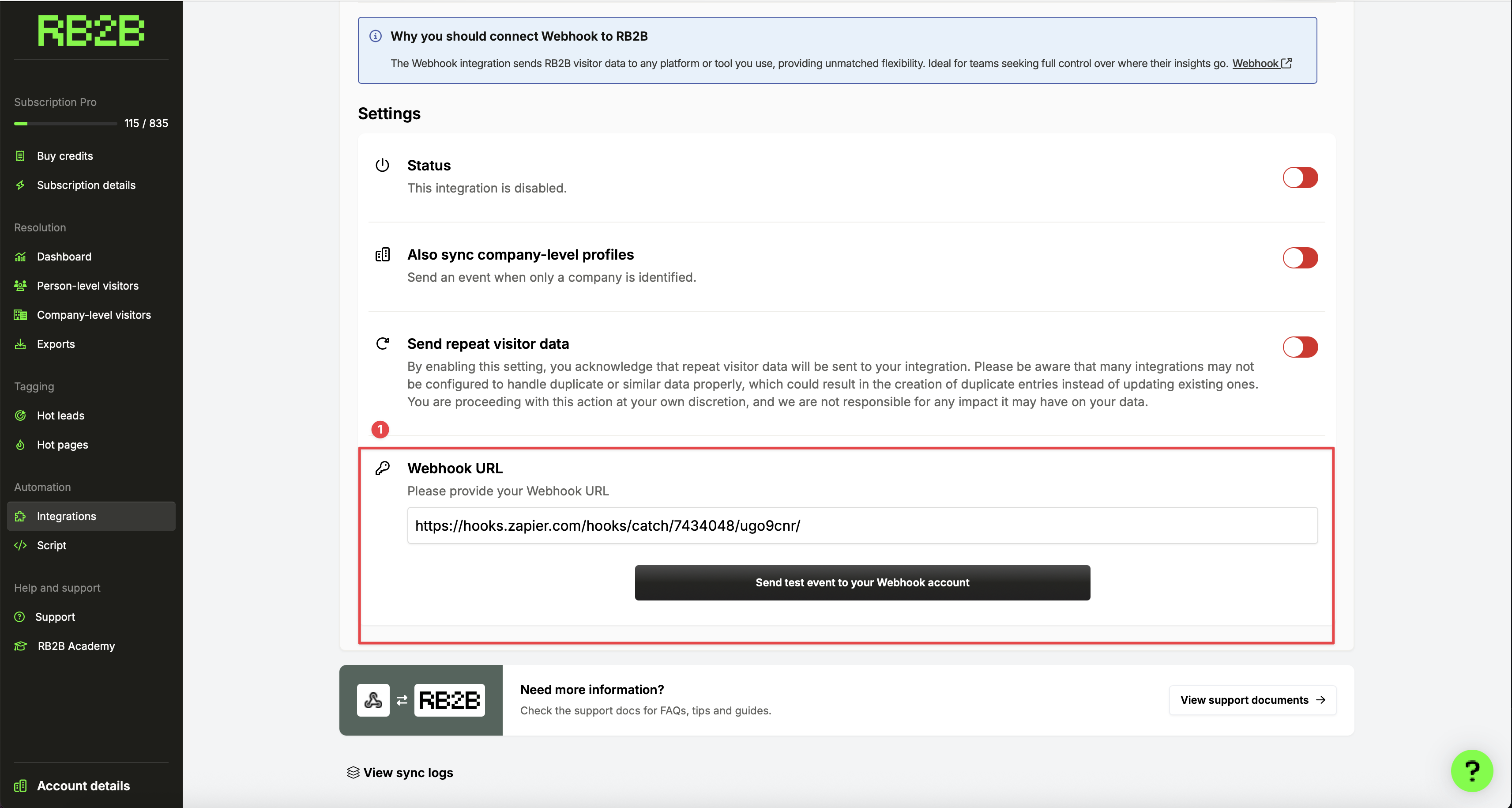 Once the script is live, you’ll connect RB2B to our system using a webhook.