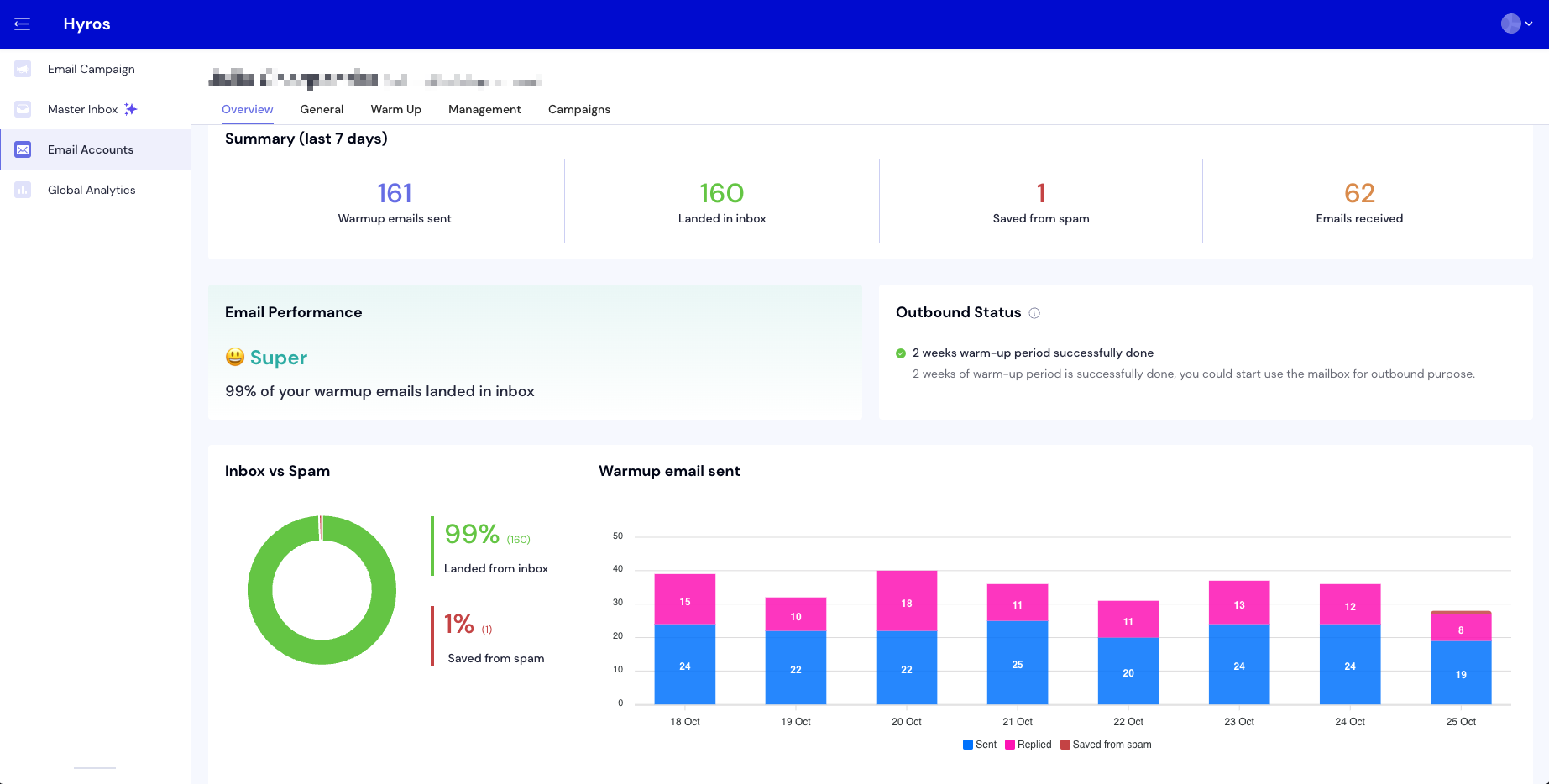 Warmup Enabled: We’ve enabled warmup emails on the account to help the reputation of the inbox.