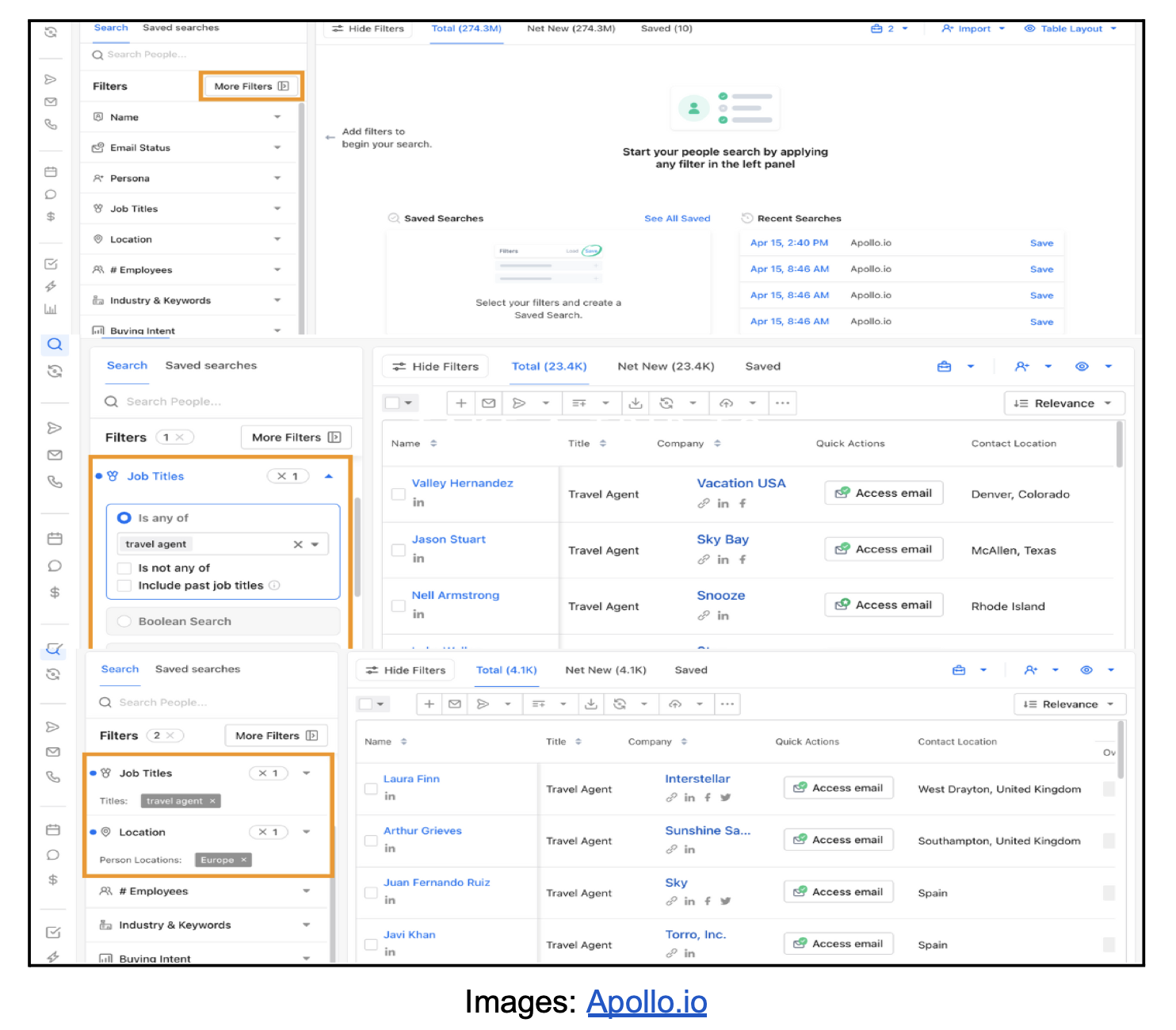 Apollo has hundreds of job titles for you to choose from, making it easy to narrow down your search and figure out who you’d like to reach out to.