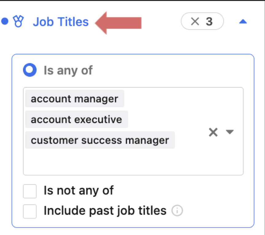 For example, if you’re looking for client-facing professionals you might look at targeting account managers and account executives. You should also include customer success managers because many organizations consider these titles interchangeable.