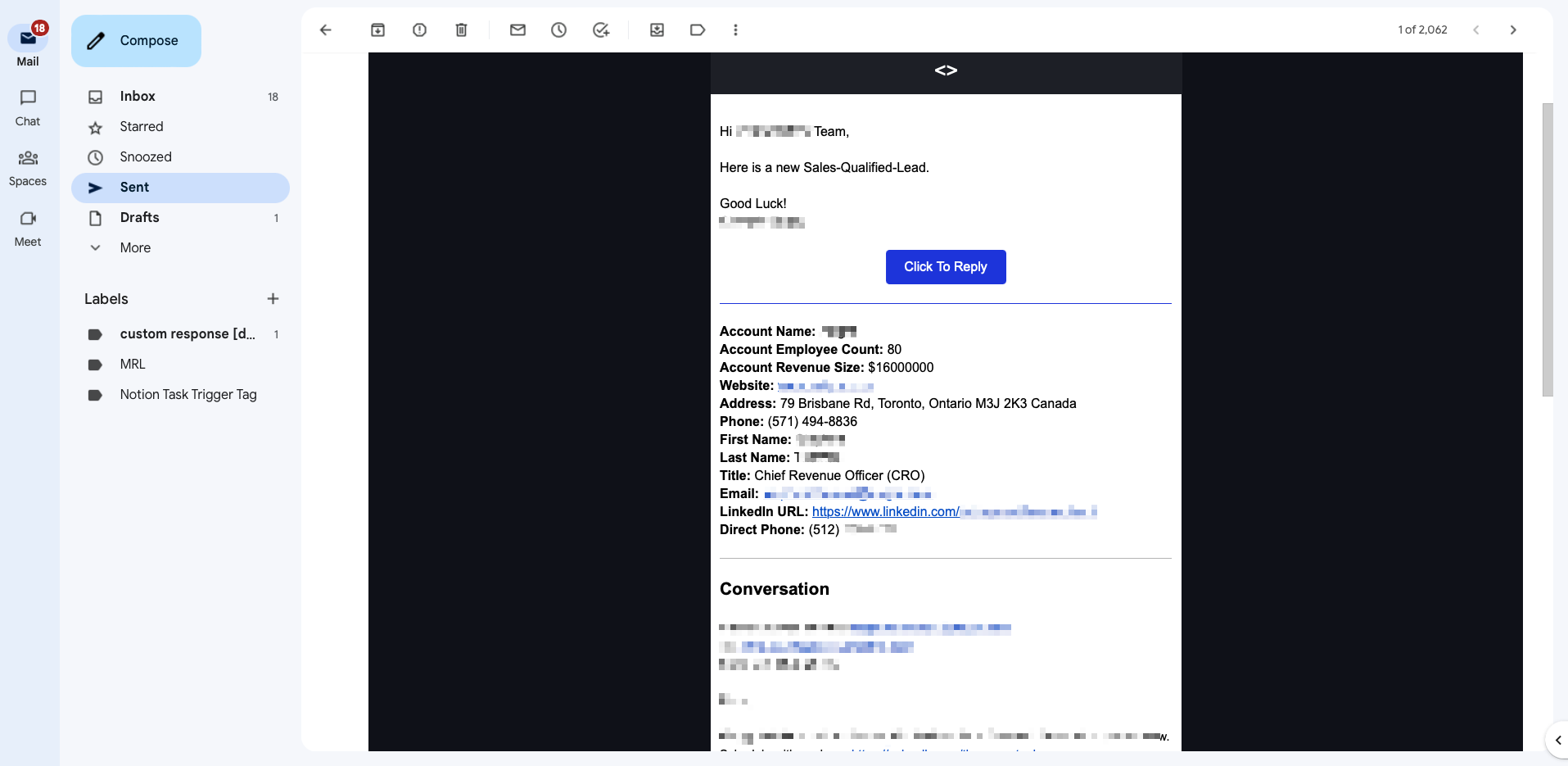 You'll receive an email that contains all the contact information for the lead. Your SQO reference sheet will be updated with the following information for each lead submitted (we pull the information from ZoomInfo & LinkedIn):